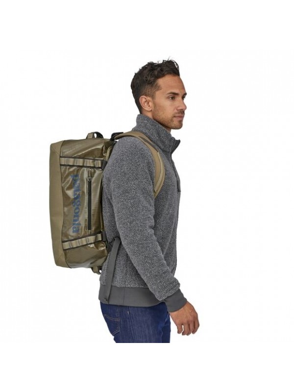 | Short Description | The smallest of Patagonias Black Hole® Duffels is perfect for small loads and long weekends; and it meets most airline and train carry-on requirements. It’s made with 100% recycled body fabric, lining and webbing. Tough and highly weather-resistant, it keeps your gear protected and easily accessible. The main compartment opens via a zippered U-shaped lid, which has a pair of zip-closing mesh pockets on the underside for easily lost items like your lottery ticket. A zippered exterior pocket holds all the stuff you need quickly. The padded bottom panel adds structure and helps cushion the load when your duffel gets the baggage-handler treatment. Carrying options include padded, removable shoulder straps for a backpack carry, webbing handles with a snap closure and haul loops at either end for linking multiple bags. Daisy chains let you lash additional gear to the outside. Made from 14-oz 900-denier 100% postconsumer recycled polyester ripstop (22% solution-dyed) with a TPU-film laminate and lined with 3.3-oz 200-denier 100% recycled polyester with a polyurethane coating. Both fabrics have a DWR (durable water repellent) finish. |